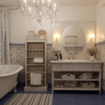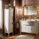 - Мебель для ванной комнаты подбирают в одном стиле с общим интерьером, включающим сантехнику, отделку.