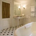 Классический и близкие к нему варианты стилевого оформления ванной комнаты подходят для просторных помещений, так как предполагают наличие свободного пространства и воздуха.