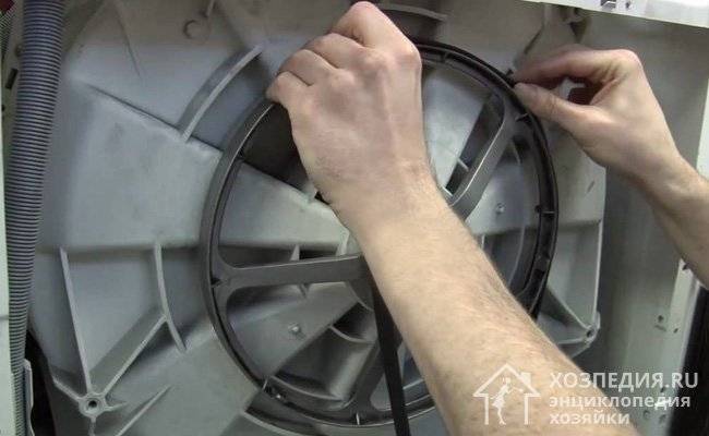 Если ремень находится на месте, но барабан при этом не вращается, то единственным выходом остается его замена. При соскакивании можно просто вернуть ремень на место, работоспособность должна восстановиться.