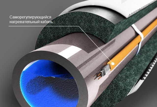Конструктивно резистивный кабель состоит из изолированных металлических жил. Нагрев происходит по всей длине изделия, но без контроля температуры (терморегулятора) устройство можно перегореть. Чтобы повысить эффективность обогрева, водопроводы дополнительно утепляют с целью уменьшению тепловых потерь и достижения энергетических затрат. Утеплителями могут служить любые материалы, непроводящие тепло. Например, минеральная вата.